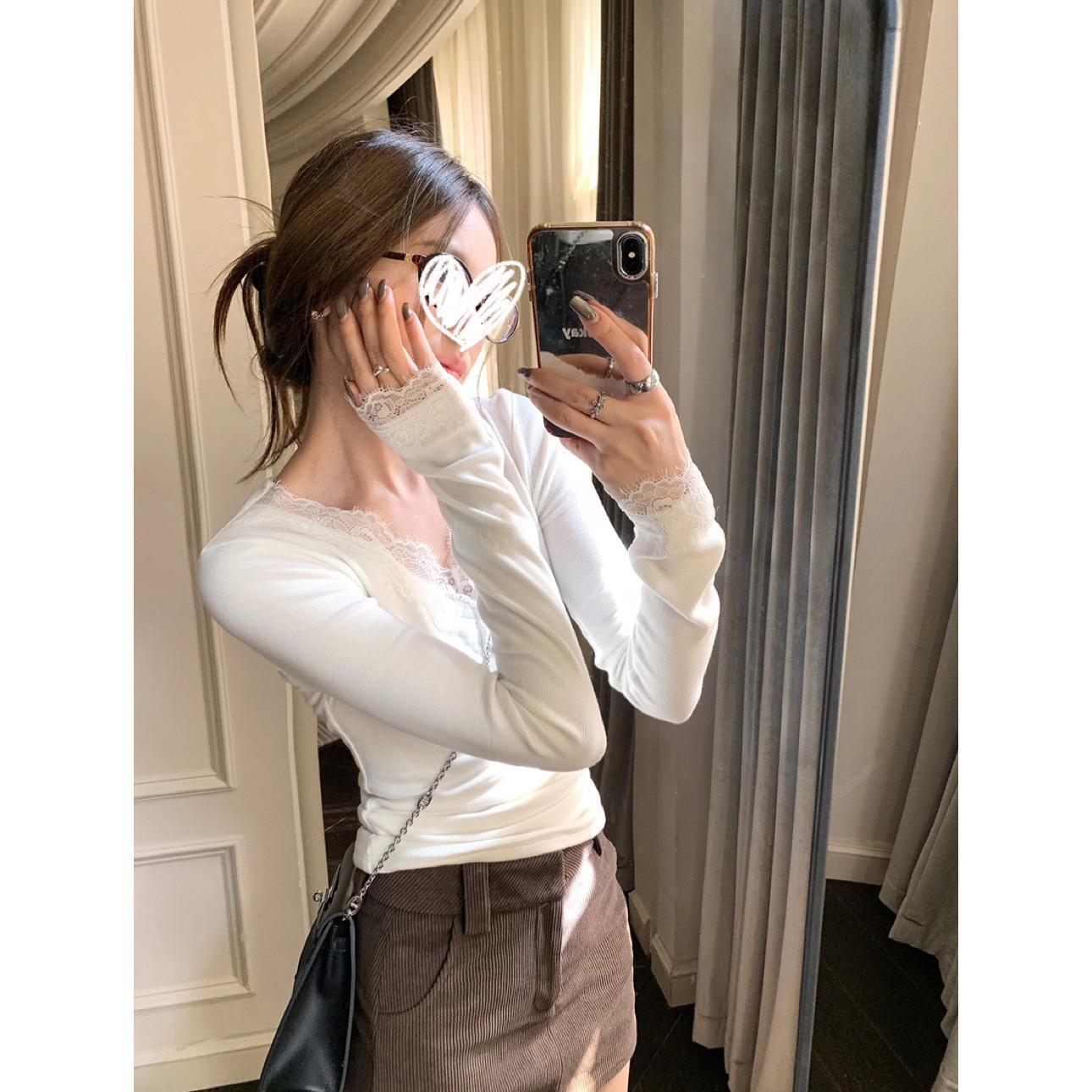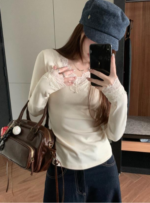 Lace-Trim V-Neck Stretch Thermal Long-Sleeve Base Layer Top (Women)